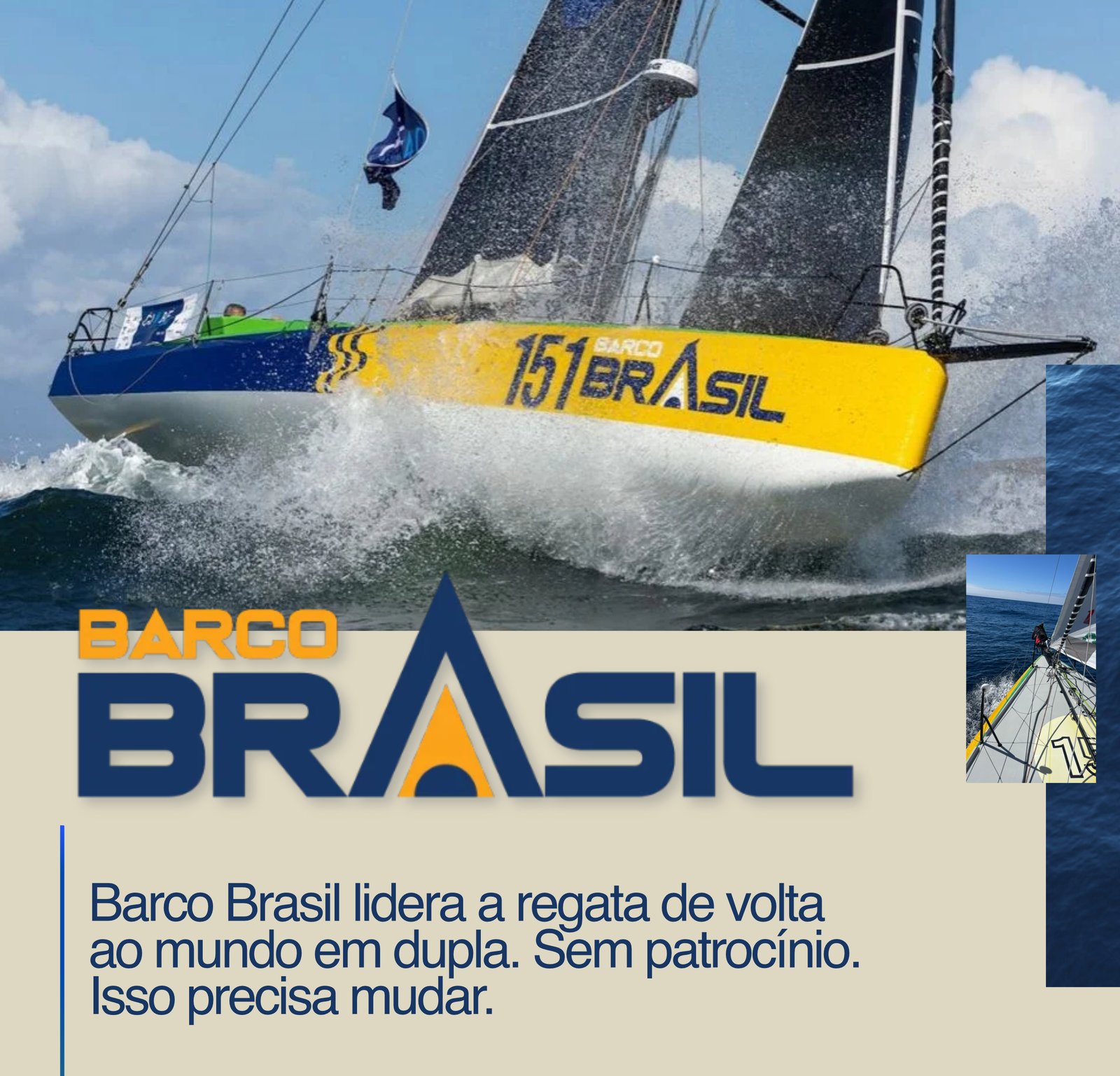 O Barco Brasil está numa jornada épica: o contorno do globo terrestre com dois velejadores num barco de 40 pés, na regata Globe40, o mais forte desafio do esporte em duplas. Esta é a segunda campanha oficial do Brasil numa volta ao mundo, iniciada em 2024.